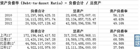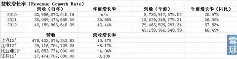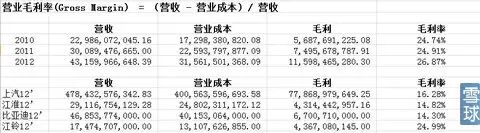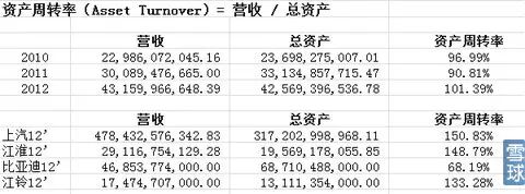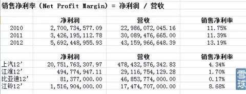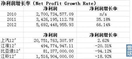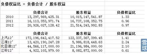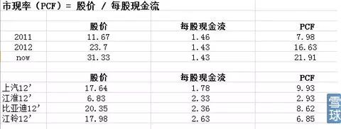 3、和它同行业的其他几家具有代表性的公司最近的年报。然后,通过历史数据的分析,看清选定公司“现金”、“收益”、“成长”和“财务健康状况”这四个方面的真实情况。最后,通过同行公司之间的比较,确认选定公司的行业位置。需要明白的一点是:历史数据毕竟只是历史,它并不代表全部,原因很简单:现在已然腐朽者,将来可能重放异彩;现在倍受青睐者,将来却可能日渐衰落。(出自本杰明·格雷厄姆《证券分析》)(本总结中的数据出自长城汽车2011-2012年年报,长城汽车2012年Q1-Q3财报,以及上汽集团、江淮汽车、比亚迪和江铃汽车2012年年报。)