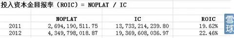 数据分析a.通过观察长城3年数据,我们可以看到,长城的ROE一直维持在一个非常高的水平。b.通过与同行业公司的比较,我们可以看出,长城的ROE在行业中也算一个较高的水平。7.投入资本金回报率(ROIC)关于ROICa.ROIC用来测量一家公司分配其资源进行投资的回报率。b.如果一家公司的ROIC几年来一直维持在25%以上,我们就马上能断言:这是一家值得跟踪的公司。c.相反的,如果一家公司的ROIC一直低于10%,我们也能马上断言这是一家平庸的公司。d.关于计算的细节,我已经在“分享知识:如何计算投资资本回报率(ROIC)”的帖子中列举得很详细。