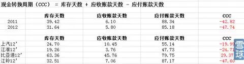c.CCC计算的细节较为繁琐,我已经在“分享知识:现金转换周期(CCC)”的帖子中列举了。d.CCC如果为负数,说明存货和应收帐款周转天数都很短,而应付账款递延天数很长,公司可以将营运资金数额控制到最小。e.CCC常用于同行业公司作比较。