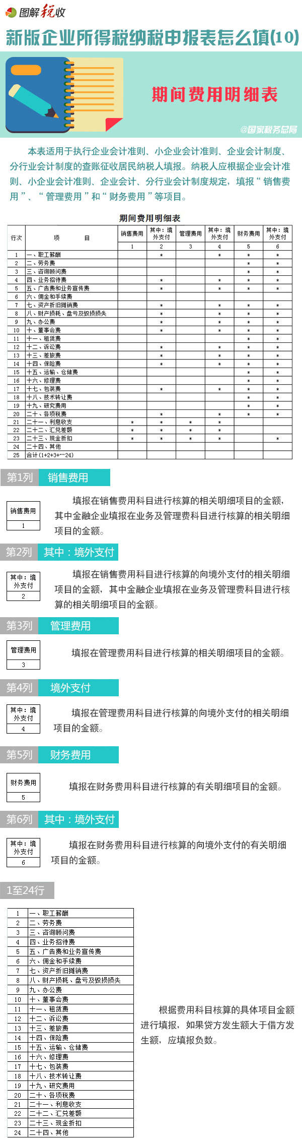 【图解税收】新版企业所得税纳税申报表怎么填(10):期间费用明细表