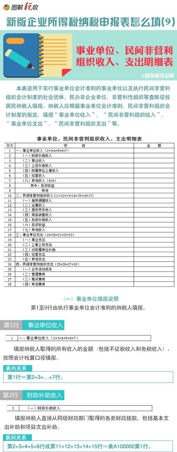 【图解税收】新版企业所得税纳税申报表怎么填(9):事业单位、民间非营利组织收入、支出明细表